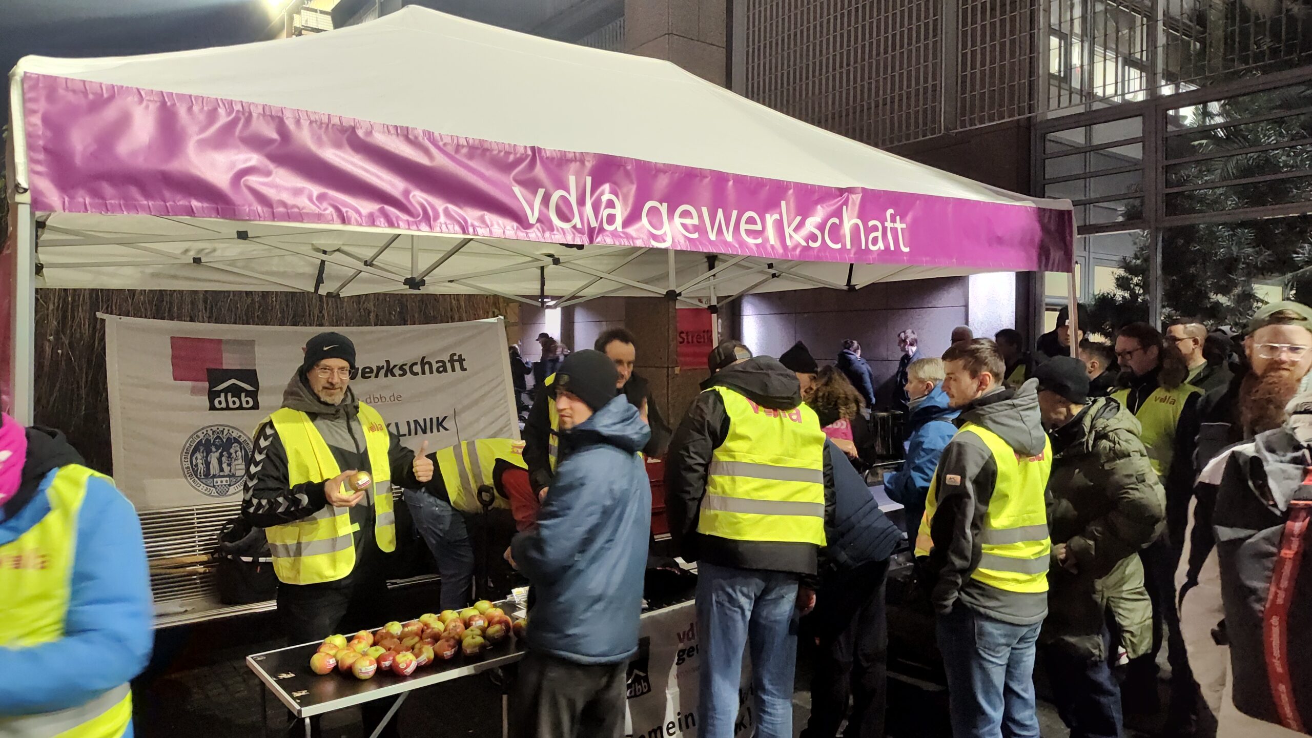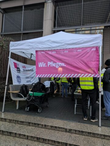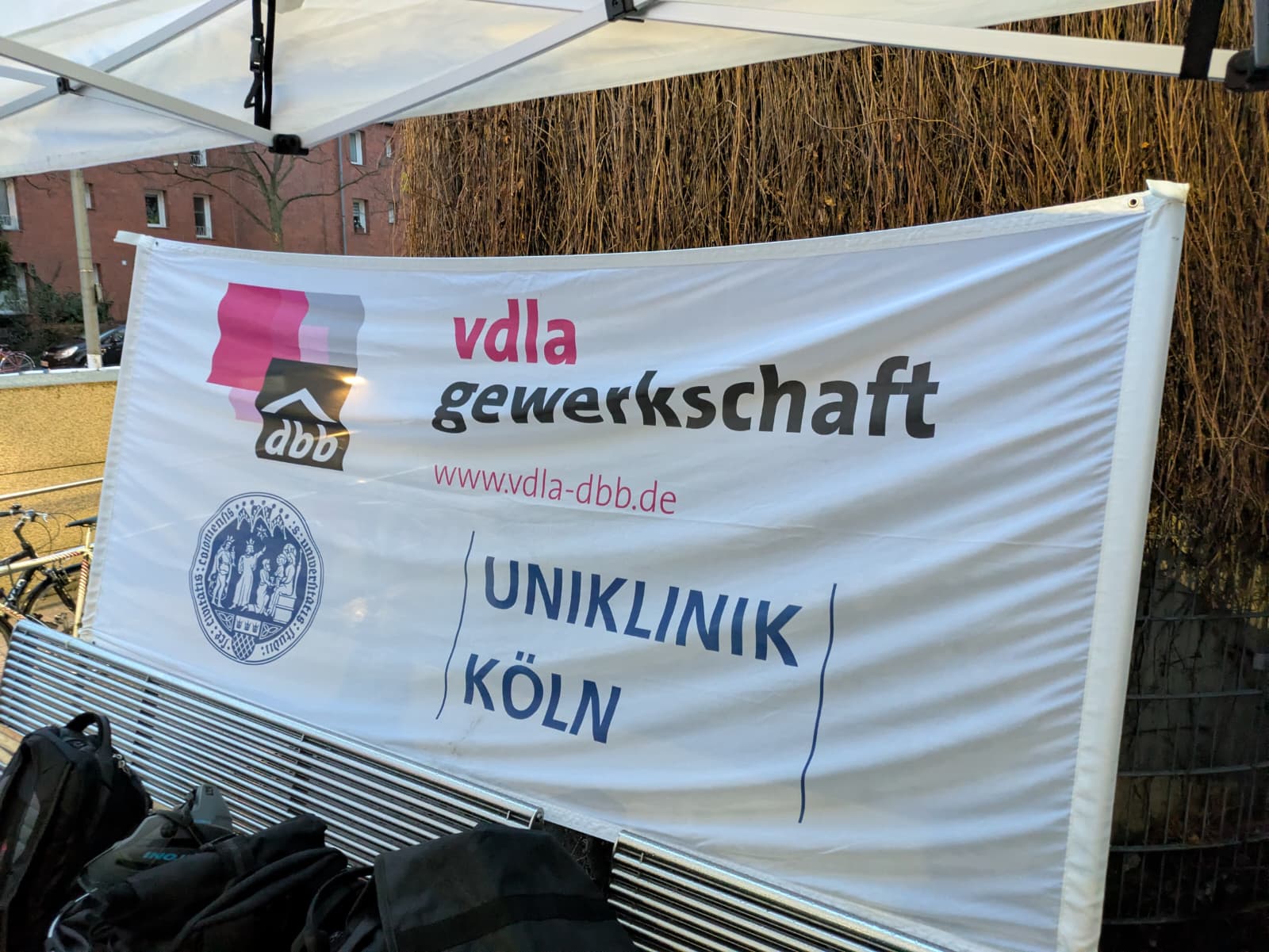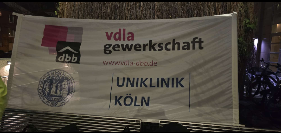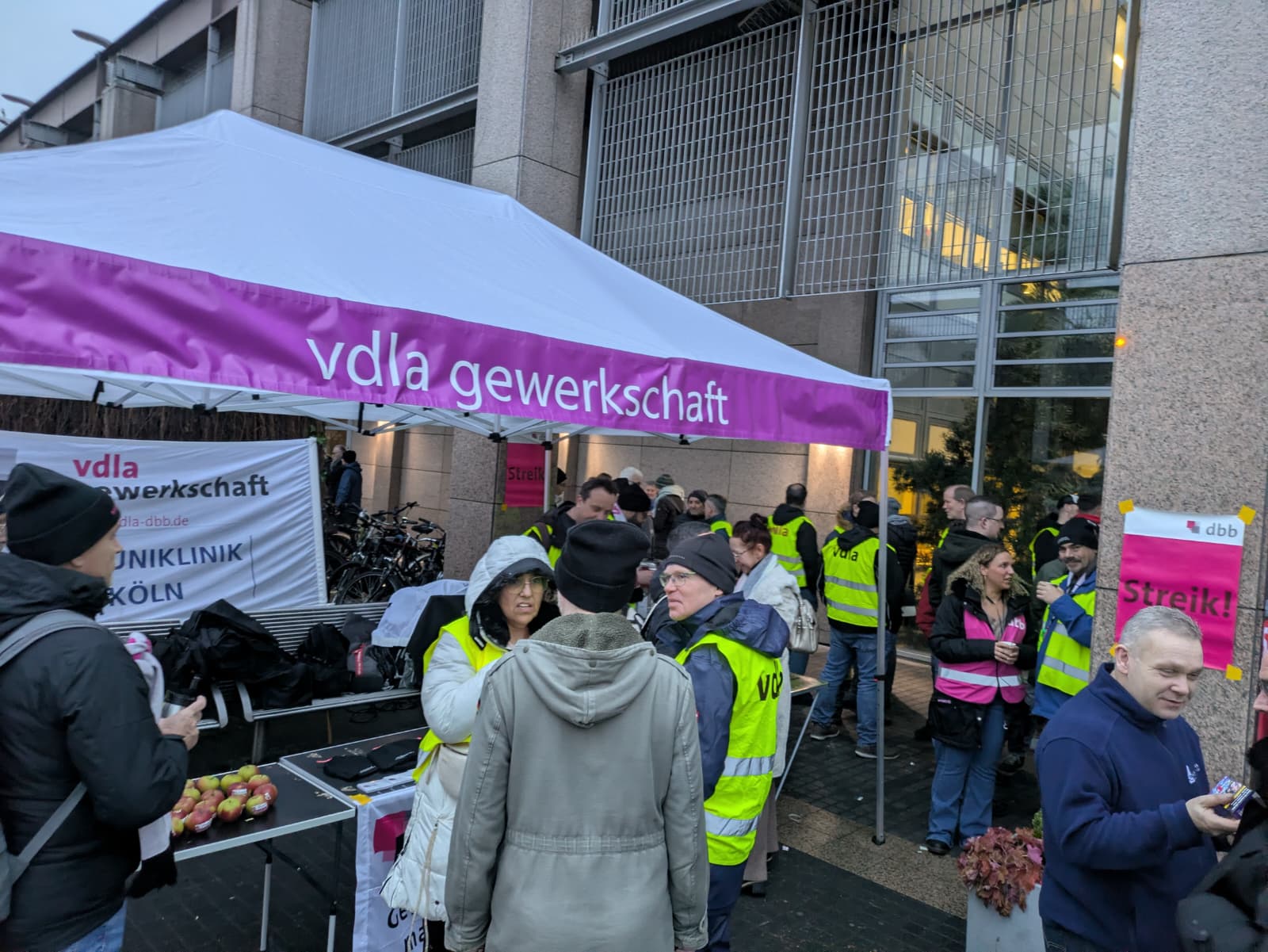 Heute haben die Beschäftigten der Fachgruppe Köln ein starkes Zeichen in der Tarifauseinandersetzung gezeigt und sind vor dem Haupteingang der Uniklinik Köln für Ihre Forderungen auf die Straße gegangen.