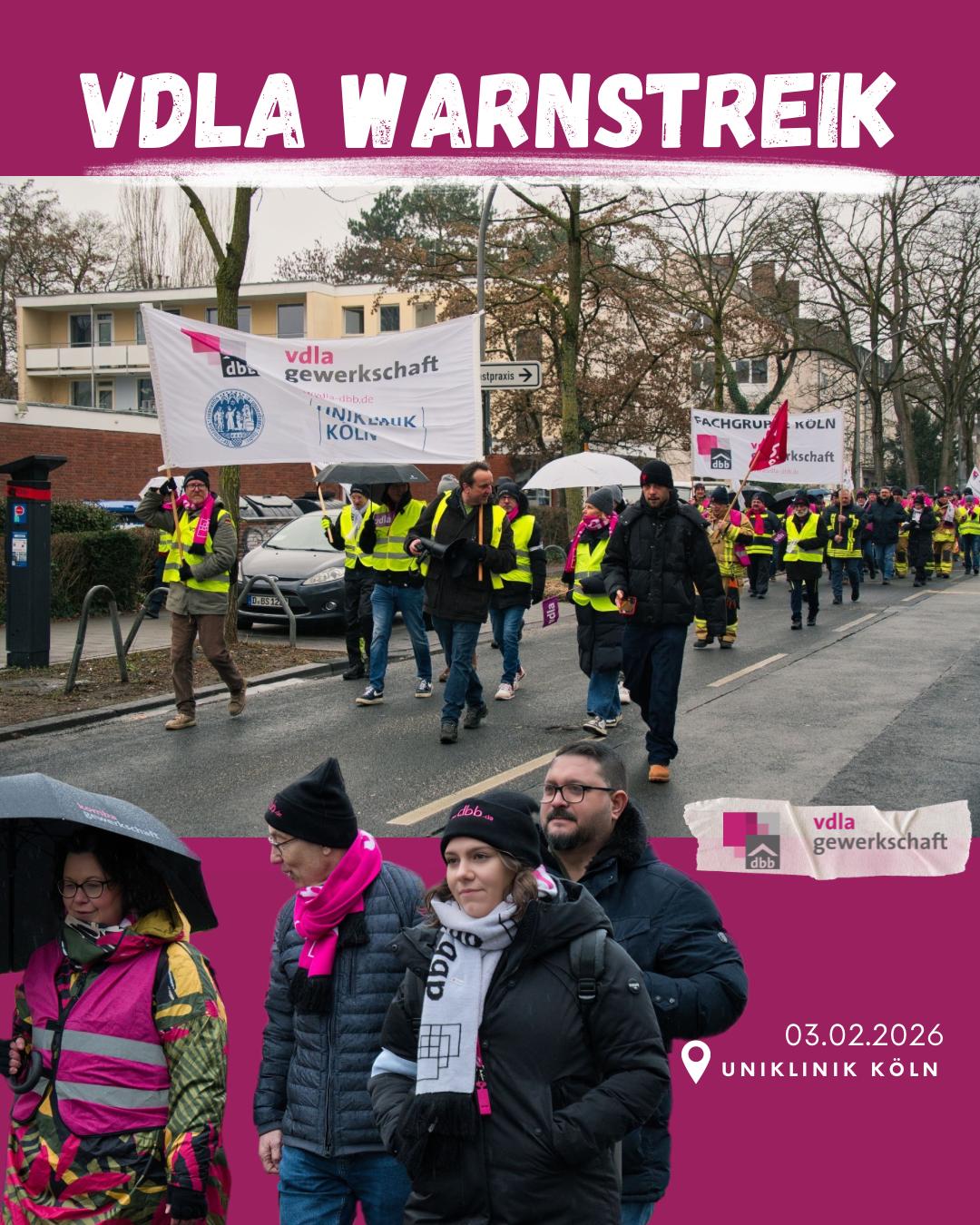 die Mitglieder der vdla gewerkschaft, Fachgruppe Köln werden hiermit zum ganztägigen Warnstreik am Dienstag, 03.02.2026 aufgerufen.